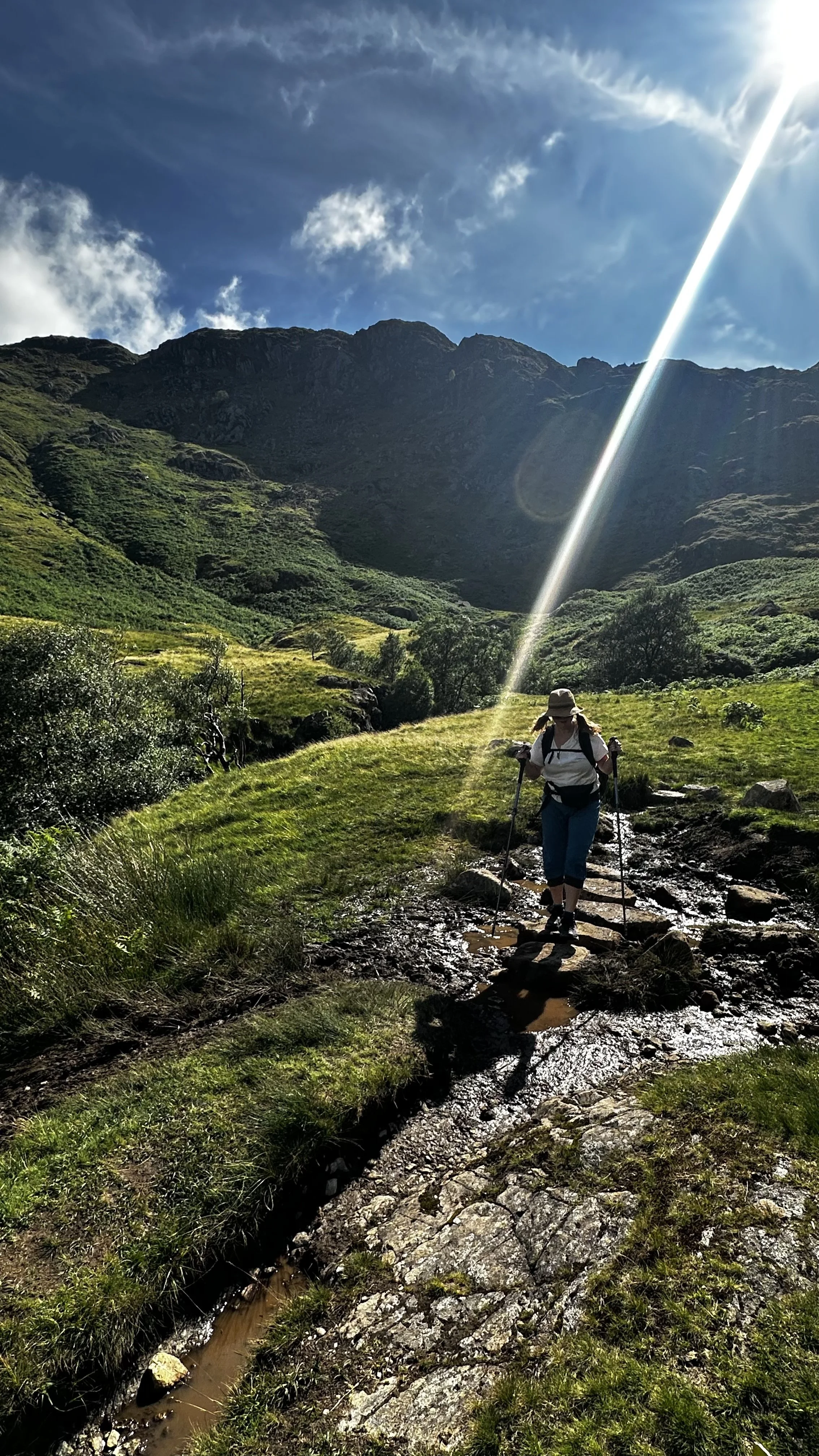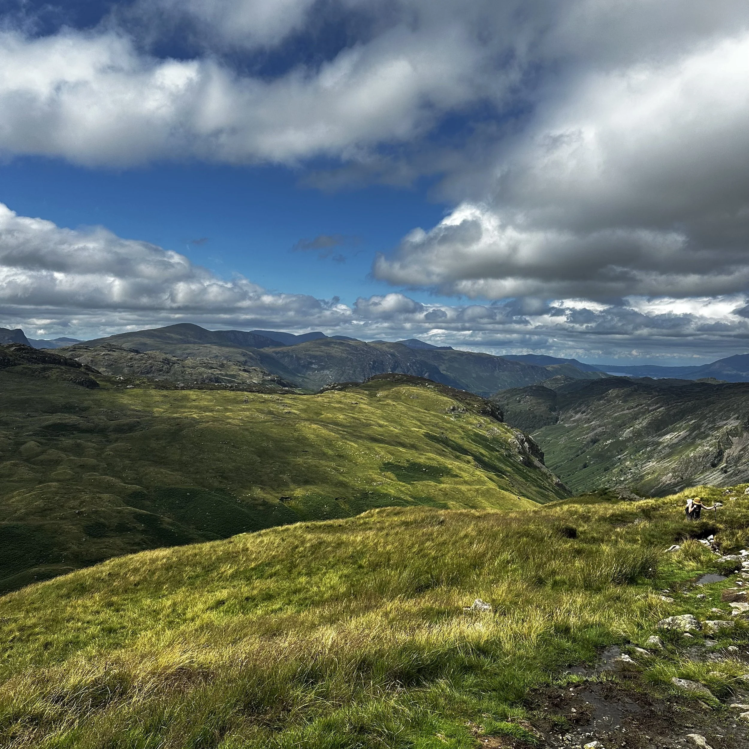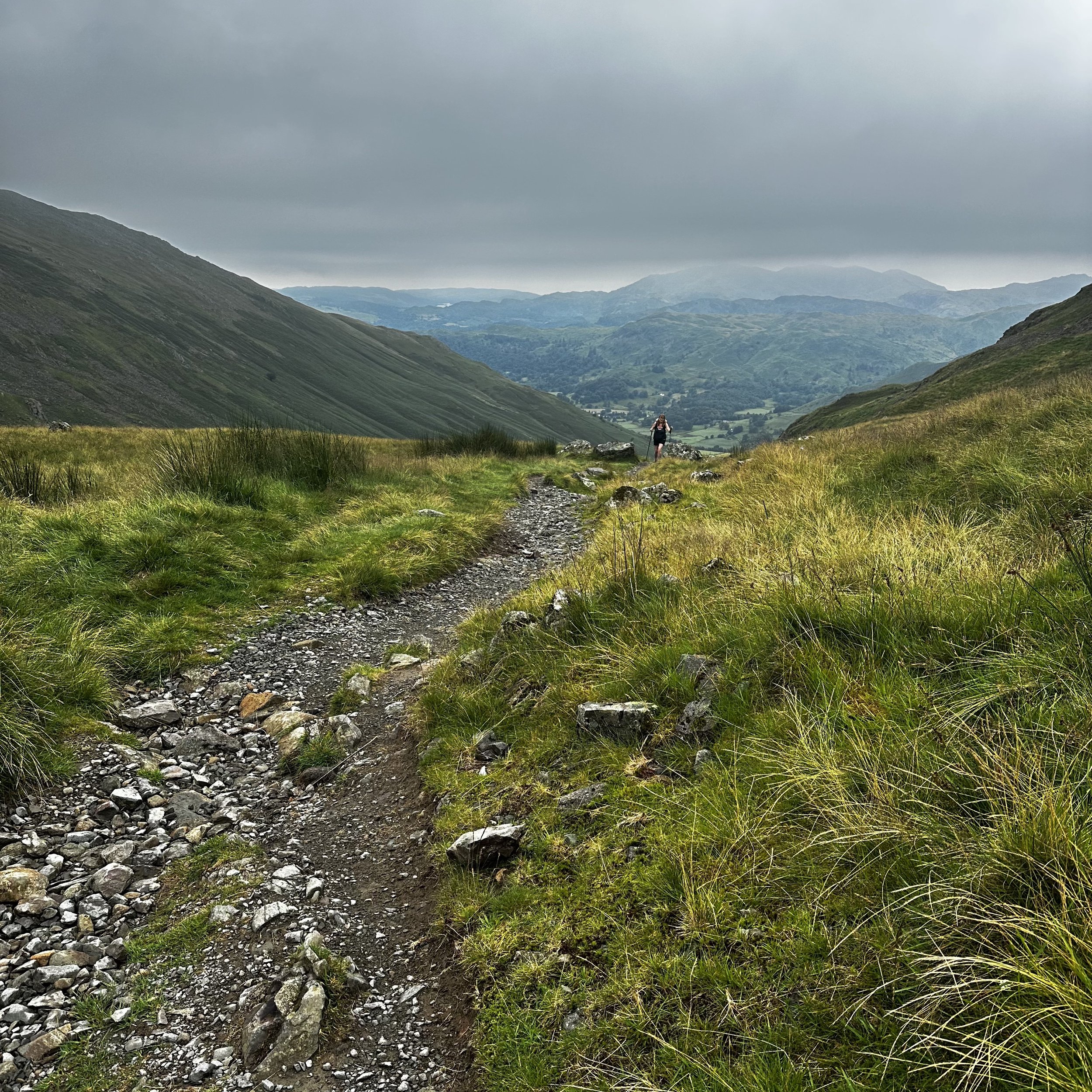 What a day! 11 hours hike. Two tops traversed and one near suicidal wife. At least now I know that 15 miles was at least 5 miles too long for Esther, especially as the sun came out for the last two hour tortuous slog down into Grassmere. Tortuous for Esther due to exhaustion and a pained hip. Tortuous for me to know I’d caused it. Thank God it wasn’t the originally planned 22.
