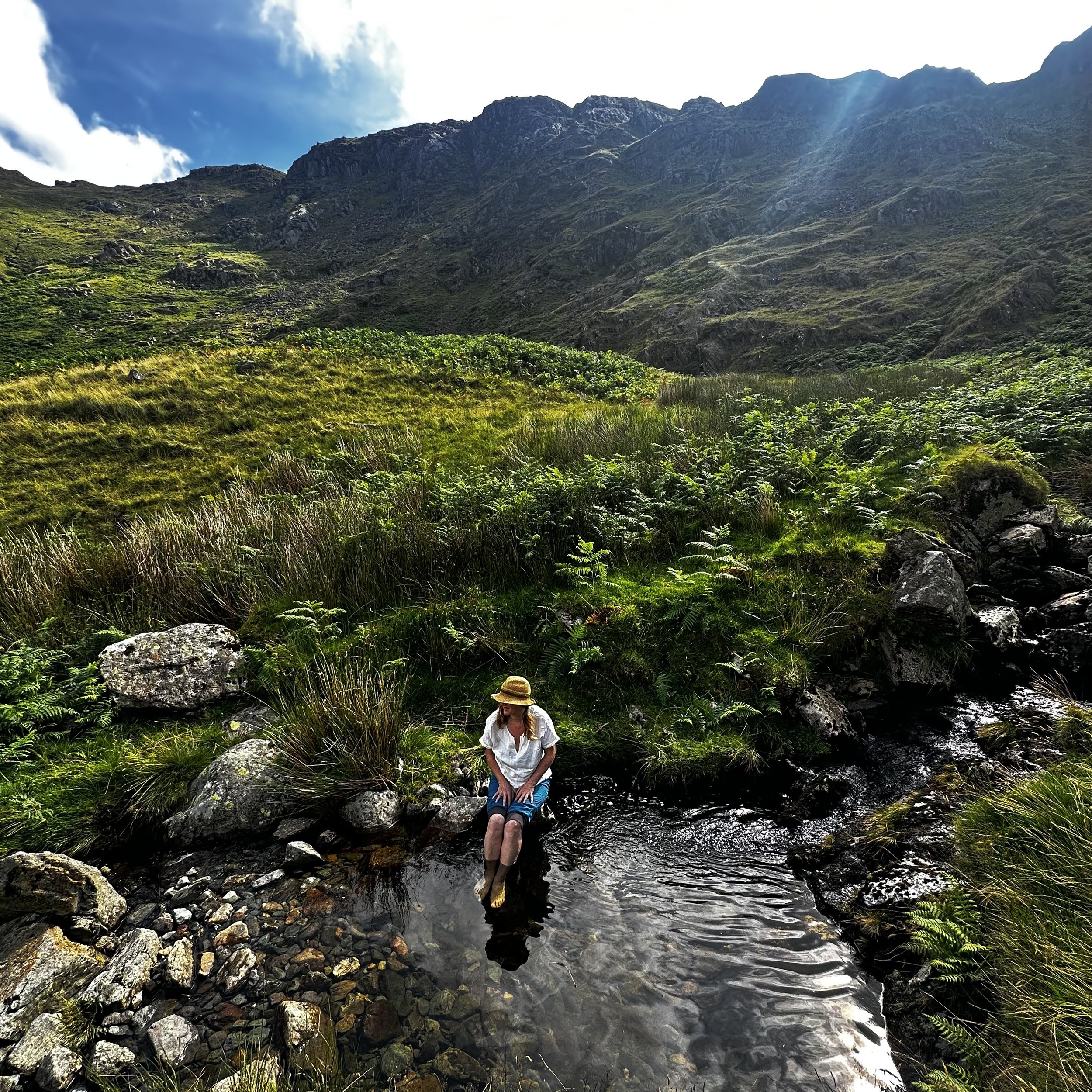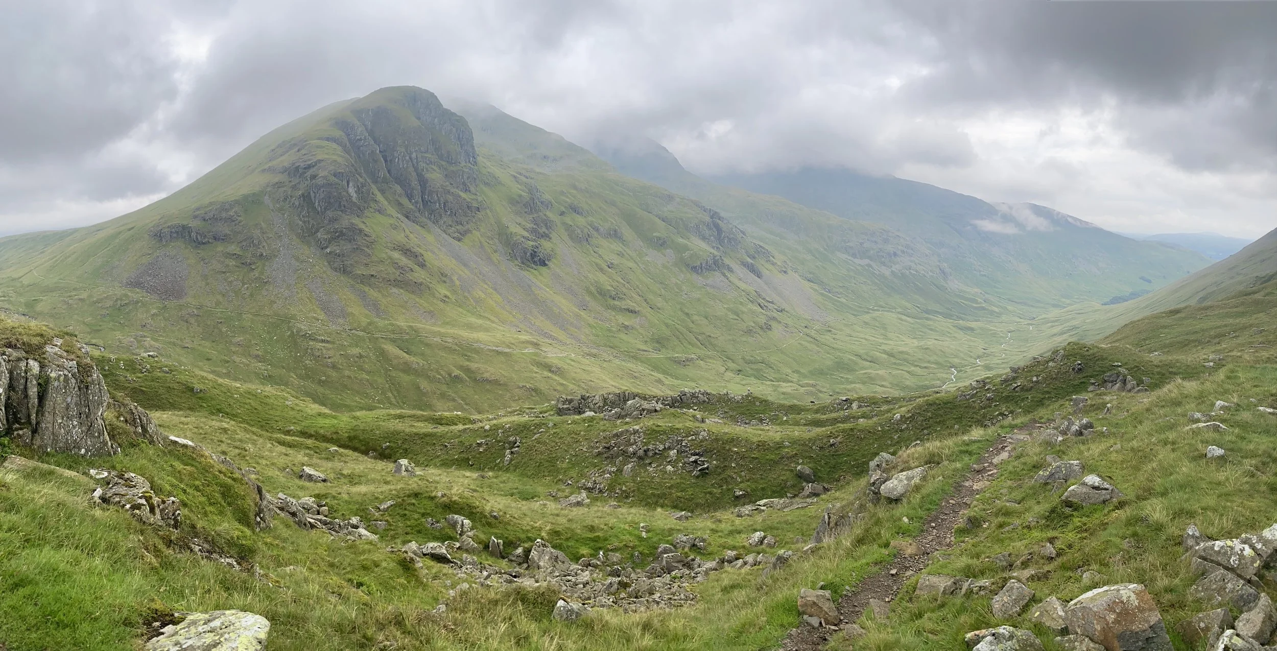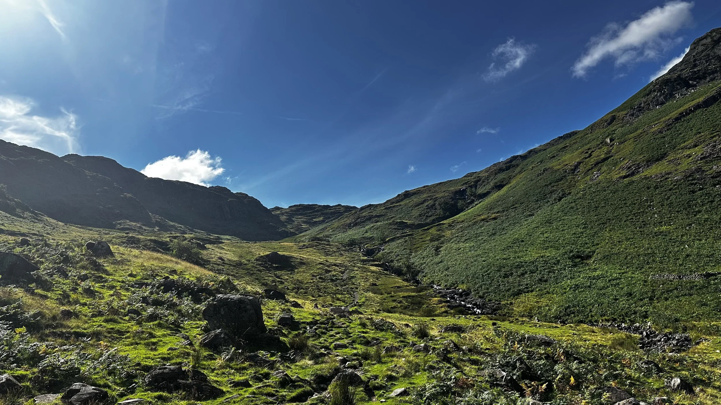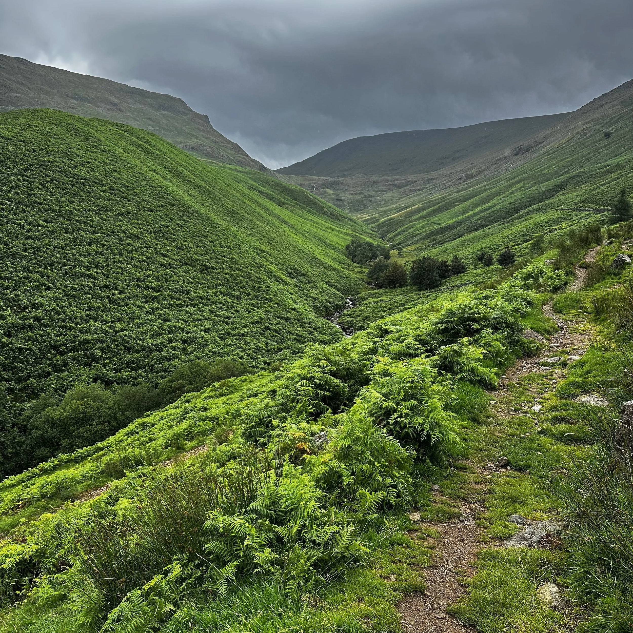 The first hour and a half of climb was through sublime, fern lined slopes with the feverish tarn rushing downhill beside us. We stopped several times on our way up, to what we assumed was to be the second and final summit of the day - the magnificent Lining Craig, whose promontory afforded spectacular views back to Borrowdale and beyond.