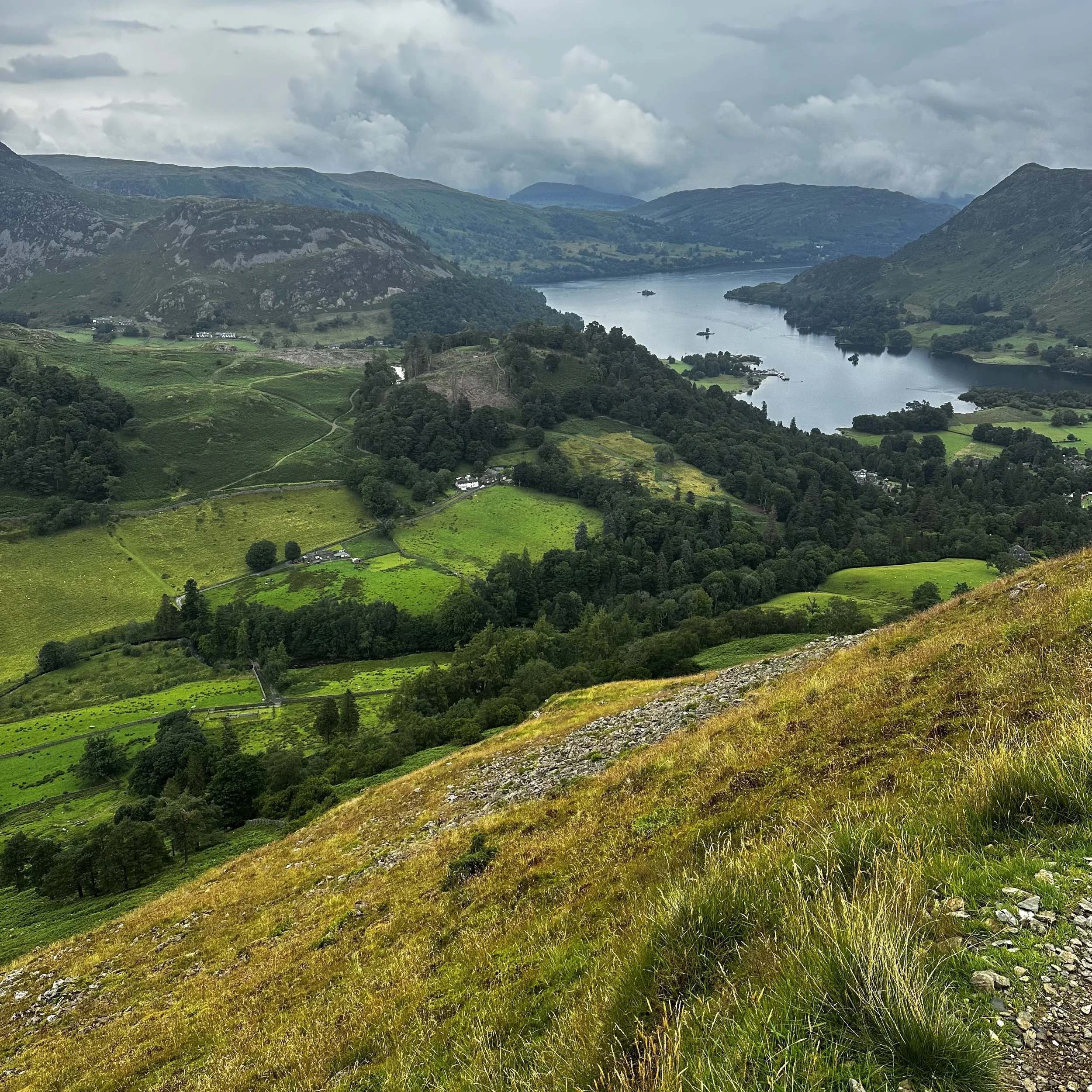 It improved greatly on our descent as splendid views of Ulleswater revealed themselves as we traversed the often steep incline down to Glenridding, avoiding the numerous fell runners following their red flagged route at crazy speeds. It reminded me of the serenity of skiing on wide open pistes only to be continually buzzed by snowboarders – but I kept my patience in check and instead focussed on the incredible stamina, the amazing levels of fitness and the breathtaking stupidity of those taking part.
