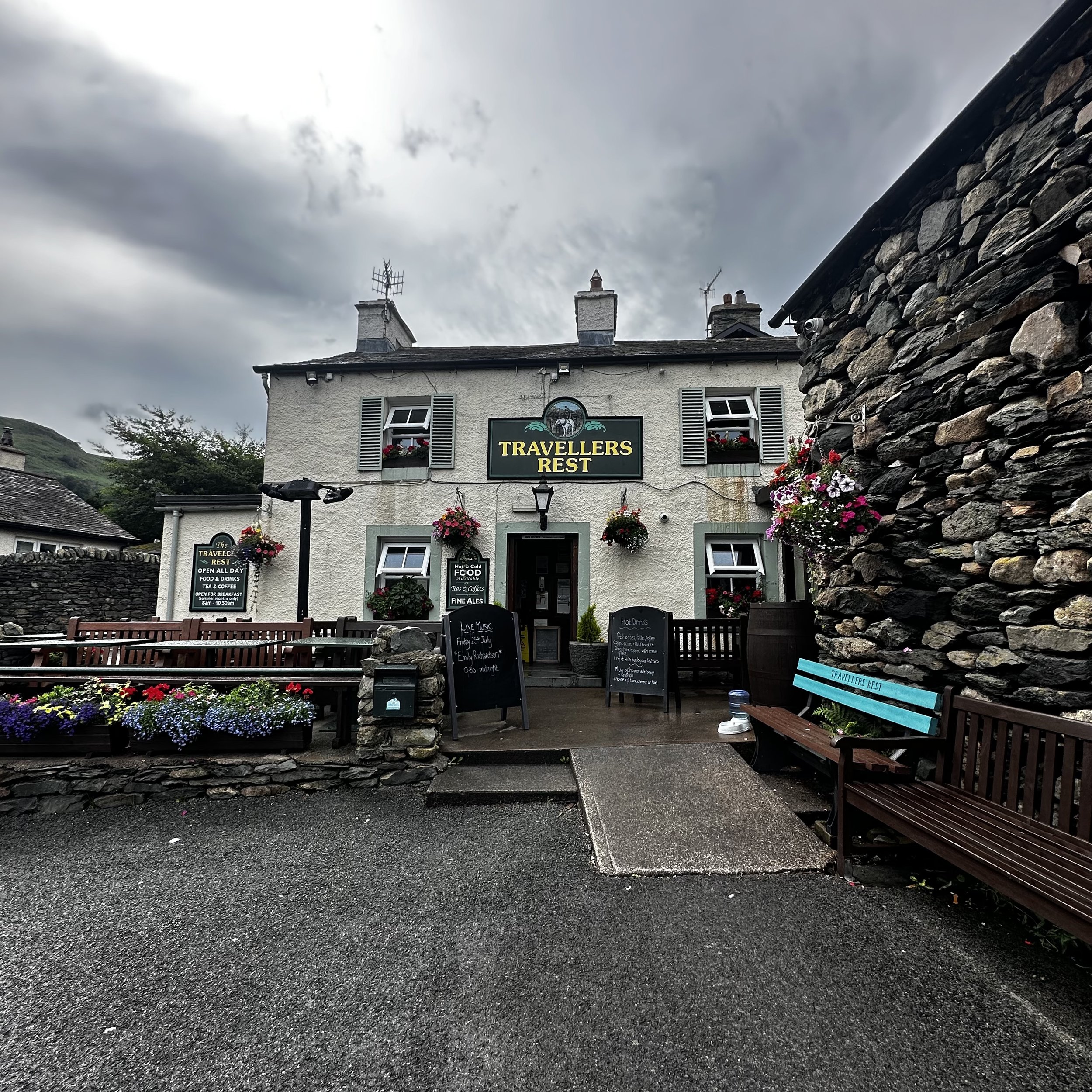 With at least an extra 5 kg in our bags, we set off to the YHA Hevellyn, stopping en-route at the Travellers Rest for an hour, to enjoy a couple of excellent pints of Helvellyn Pale, whilst I wrote up yesterday’s entry and Esther stretched out on her side of the bench, before we readied ourselves for the final push to the hostel, a further 1.6miles up the relatively gentle incline of the track.